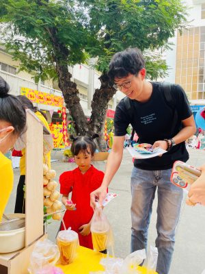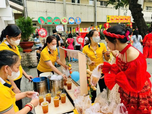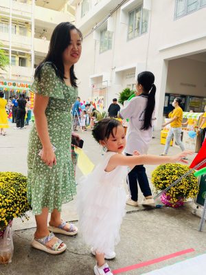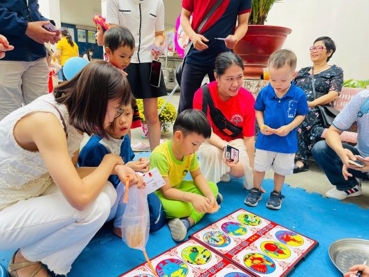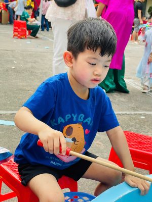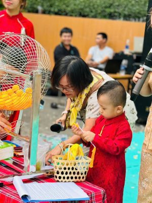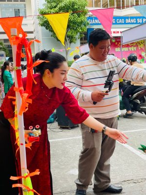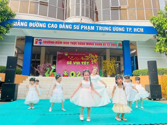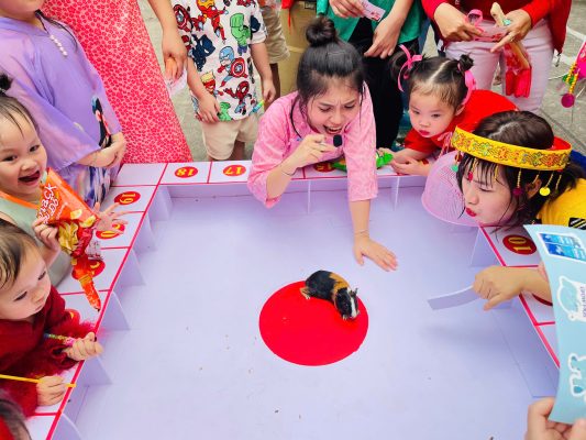 Tham dự ngày hội Xuân các bạn được thưởng thức các tiết mục văn nghệ của các bạn, các Cô, xem các anh chị lớp Lá múa lân và chơi rất nhiều trò chơi dân gian như: ném vòng, thả bọ, câu cá….