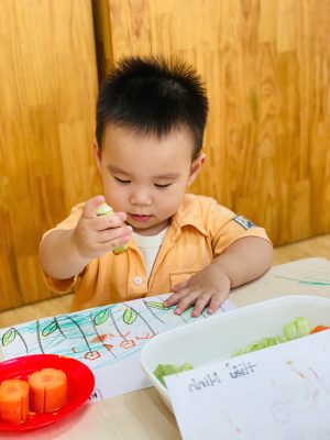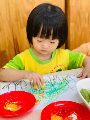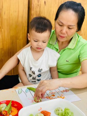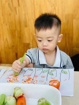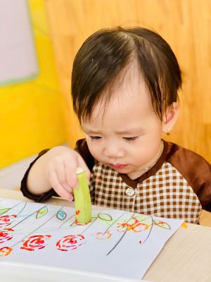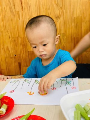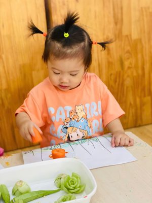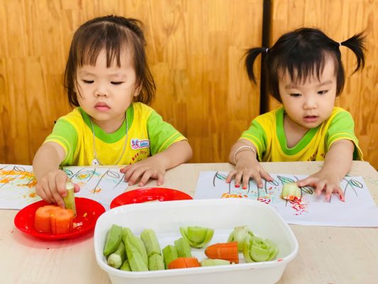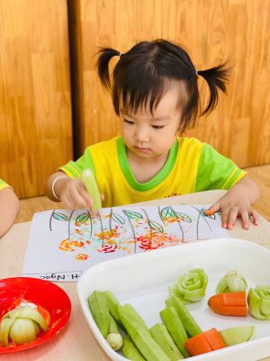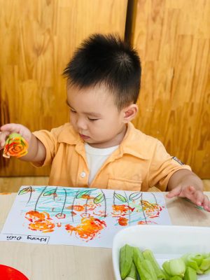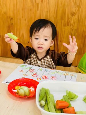 Giờ đây, các con đã ríu rít theo cô vào lớp, háo hức cùng nhau tham gia hoạt động in màu từ rau củ quả. Từng dấu in xinh xắn, rực rỡ như chính niềm vui mới đang lớn dần trong mỗi bé. 🍅🥦🥕