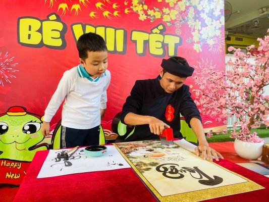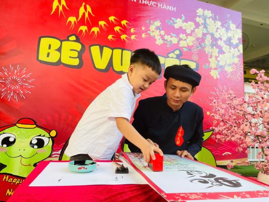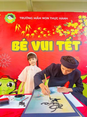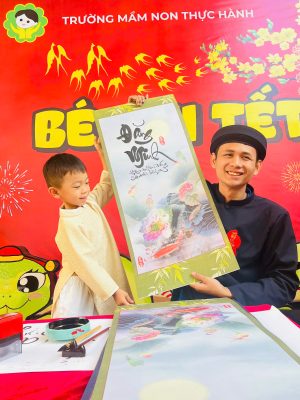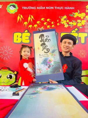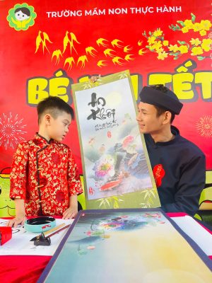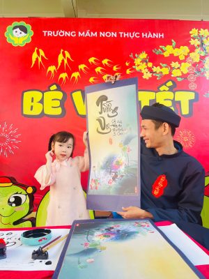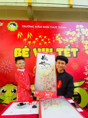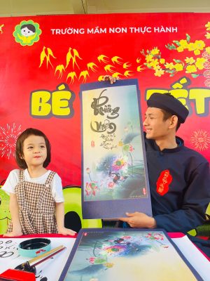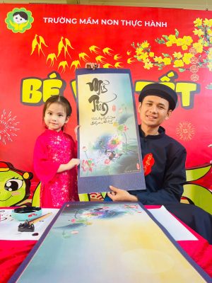 Và để tái hiện nét văn hóa độc đáo ấy cũng như gieo vào tâm hồn trẻ thơ sự hiếu học, lưu giữ truyền thống tốt đẹp ấy sáng nay tại sân trường MNTH các bạn nhỏ đã xúng xính với hoạt động Xin chữ viết từ thầy Đồ vào ngày đầu xuân với ý nghĩa như xin một thứ lộc, tài, may mắn. Ngoài ra còn thể hiện lòng mong muốn được xin cái thanh tao, tài giỏi, đức độ của người Thầy.