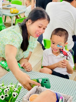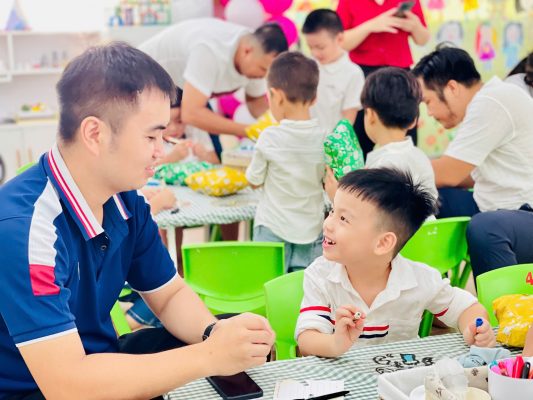 Từ sân trường đến từng góc lớp nhỏ, đâu đâu cũng ngập tràn tiếng cười trong trẻo của các con và nụ cười hạnh phúc của Ba Mẹ. 🌷 Nơi thì các con hóa thân thành những “nghệ sĩ nhí”, tự tin biểu diễn các tiết mục văn nghệ dành tặng Bà, tặng Mẹ, tặng Cô. 🌷 Nơi thì Ba Mẹ lại trở thành những người bạn lớn, cùng con tham gia các trò chơi vận động đầy sôi nổi. 🌷 Và đặc biệt ý nghĩa là những khoảnh khắc cả nhà mình cùng quây quần, tỉ mỉ tạo nên những món quà xinh xắn: một tấm thiệp, một bông hoa giấy, một chiếc quạt được trang trí công phu… Mỗi món quà có thể còn chút vụng về, nhưng đó chính là tình cảm ngây thơ, chân thành và trọn vẹn nhất mà các con muốn gửi gắm.