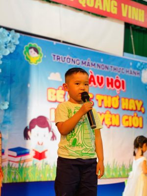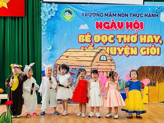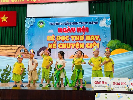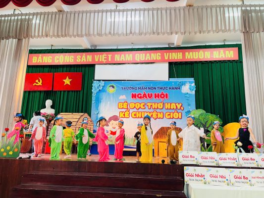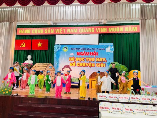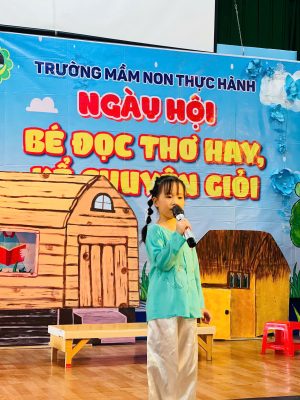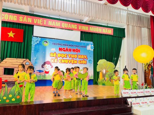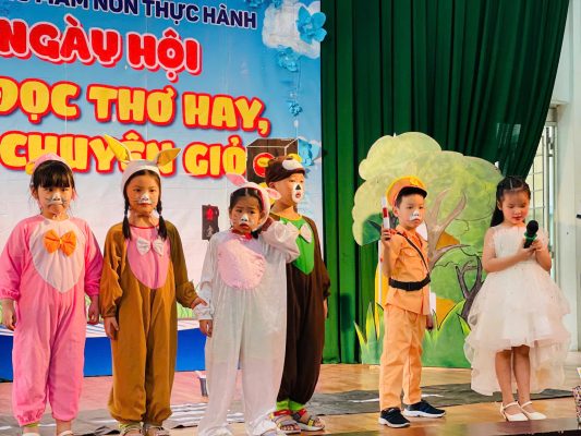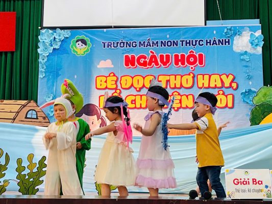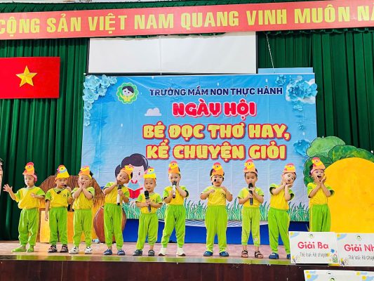 Hôm nay, ngày 21/3/2025, Trường Mầm non Thực hành rộn ràng hơn bao giờ hết với không khí vui tươi, náo nhiệt của Ngày hội “Bé đọc thơ hay – Kể chuyện giỏi”. Đây là một sân chơi bổ ích giúp các bé rèn luyện kỹ năng ngôn ngữ, phát triển tư duy sáng tạo, đồng thời nuôi dưỡng niềm yêu thích văn học ngay từ lứa tuổi mầm non. Không chỉ dừng lại ở việc đọc thơ hay, kể chuyện giỏi, ngày hội còn là dịp để các bé tự tin thể hiện bản thân, mạnh dạn trước đám đông và bồi đắp lòng yêu văn chương qua từng vần thơ, từng câu chuyện ý nghĩa. Ngày hội năm nay vinh dự chào đón sự góp mặt của cô Tường Vân – Trưởng khoa Giáo dục Mầm non, cùng cô Vũ Lụa, cô Thanh Trúc – Giảng viên Trường Cao đẳng Sư phạm TP.HCM. Sự hiện diện của các cô, cùng tập thể giáo viên nhà trường và các bậc phụ huynh, đã tạo nên nguồn động viên to lớn, tiếp thêm sự tự tin để các bé tỏa sáng trên sân khấu