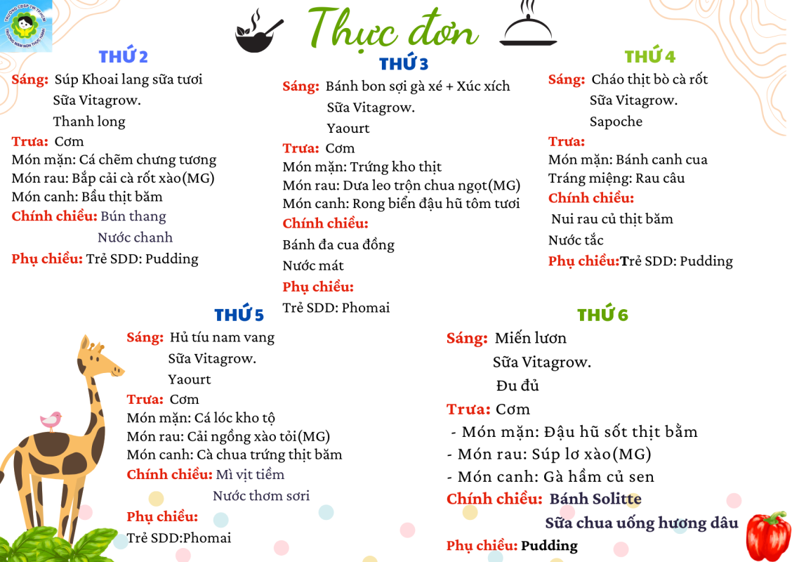 THỰC ĐƠN TUẦN 2 THÁNG 10 NĂM 2024