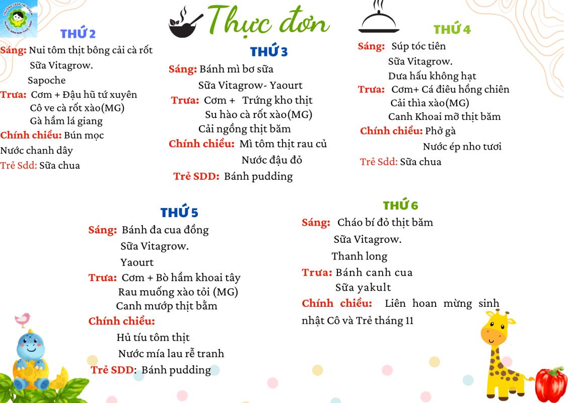 THỰC ĐƠN TUẦN 1 THÁNG 11 NĂM 2025