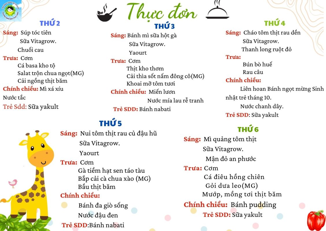 THỰC ĐƠN TUẦN 2 THÁNG 10 NĂM 2025